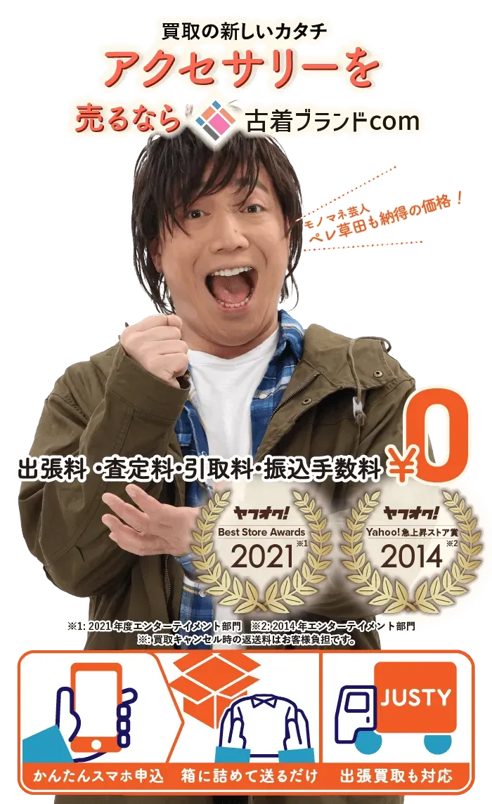 指輪・ネックレス・ブレスレット・ピアスなど、大切にしてきたアクセサリーを売るなら「古着ブランドcom」にお任せください。シャネル・グッチ・ディオールなどのブランドアクセサリーはもちろん、シルバーアクセサリーやヴィンテージアイテムまで幅広く対応しています。専門スタッフが一点ずつ丁寧に査定し、デザインやブランドの価値をしっかりと評価いたします。宅配・店頭・出張など、ライフスタイルに合わせた便利な買取方法をご利用いただけます。アクセサリーを売るなら、信頼と安心の「古着ブランドcom」へ。