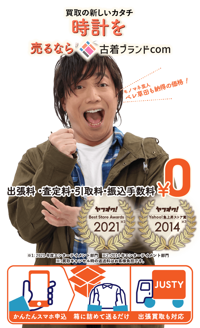 ロレックスやオメガ、タグ・ホイヤーをはじめとする高級時計から、カジュアルブランドの腕時計まで。大切な時計を売るなら「古着ブランドcom」にお任せください。経験豊富な専門スタッフが一点ずつ丁寧に査定し、ブランド価値やコンディションを正しく評価いたします。宅配・出張など、ライフスタイルに合わせた買取方法をご用意しておりますので、初めての方でも安心してご利用いただけます。時計を売るなら、信頼と実績の「古着ブランドcom」へ。