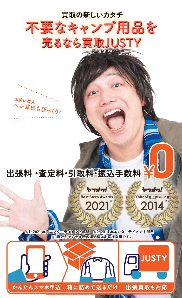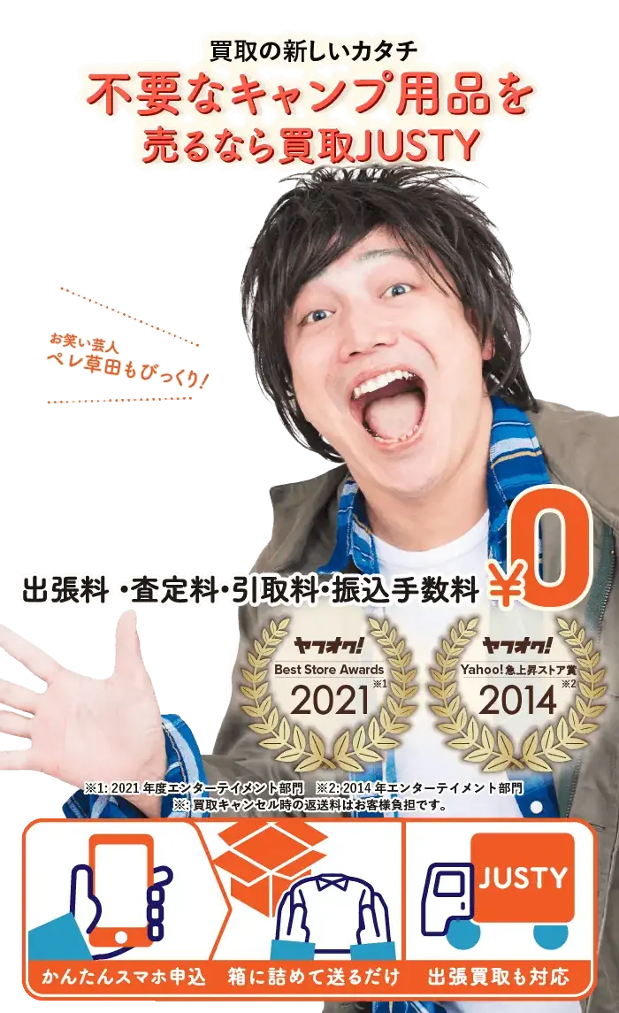 「新しいギアに買い替えて前のものが余っている」「アウトドアに行かなくなった」「大きな道具をまとめて処分したい」そんな時はJUSTYにお任せください。スノーピーク・コールマン・モンベル・ロゴス・ユニフレームなど人気ブランドのテントやランタン、チェア、調理器具まで幅広く買取対応。使用回数が少ないものはもちろん、使い込んだ道具でも経験豊富な査定士が丁寧に確認します。お客様の大切にしてきたキャンプ用品を売るなら丁寧査定のJUSTYにぜひお任せください!