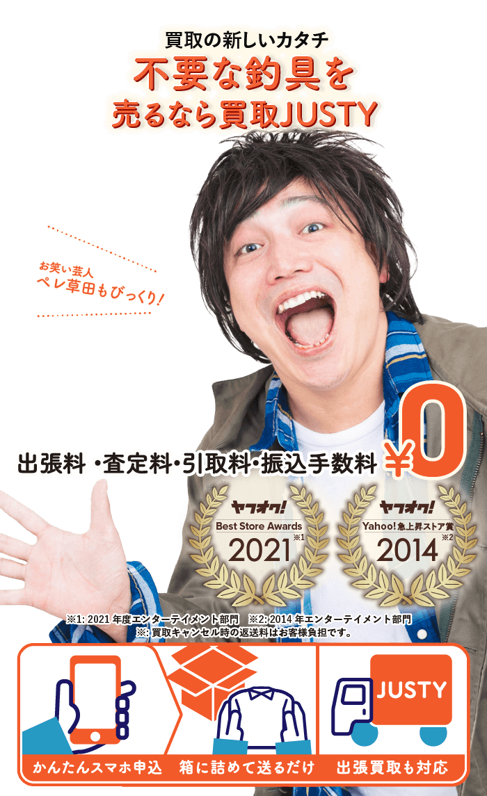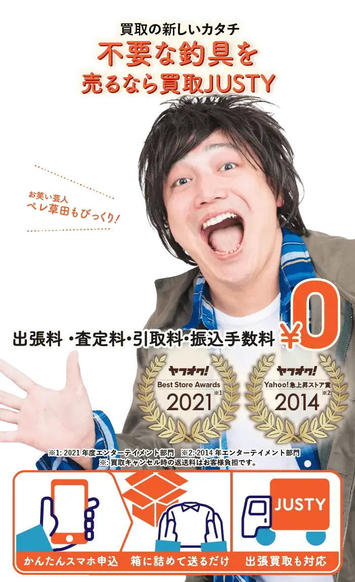 「新しいタックルに買い替えて出番がなくなった」「釣りをしなくなって道具が眠っている」「大量の釣具をまとめて整理したい」そんな時はJUSTYにお任せください。シマノやダイワ、アブガルシアをはじめ、ロッド・リール・ルアーから小物まで幅広く買取対応。人気モデルや限定品はもちろん、使用感のある道具も丁寧に査定いたします。広いアイテムを丁寧に査定いたします。モンベル、ノースフェイス、グレゴリーなどウェアや小物などの人気ブランドも高価買取の対象。お客様の大切にしてきた釣具を売るなら丁寧査定のJUSTYにぜひお任せください!