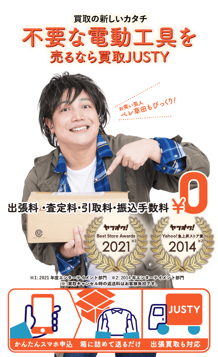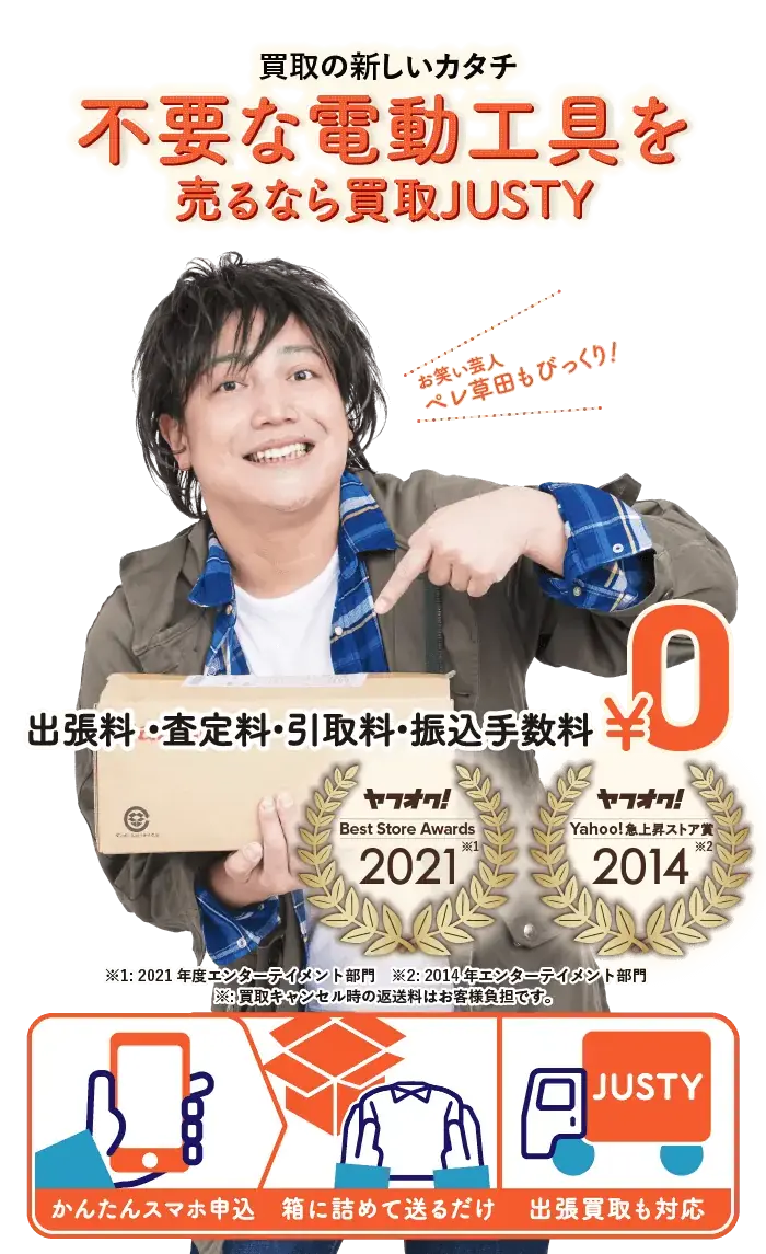 「仕事で使っていた電動工具を整理したい」「使わなくなった電動工具がたくさんある」「DIYブームで買ったけれど結局使わなかった」、そんな時はJUSTYにご相談ください!経験豊富な査定士がメーカー・型番・状態を丁寧にチェックし、国内外の幅広い販売網を活かして査定いたします。プロ仕様の本格工具からDIY用のアイテムまでしっかり対応。お客様の大切な電動工具を売るなら丁寧査定のJUSTYにぜひお任せください!