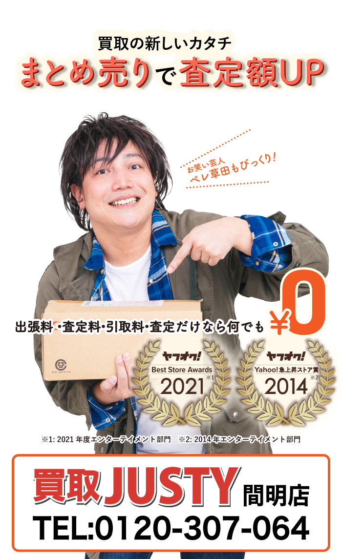 「少しでも高く売りたい」「大量の品物をどうにかしたい」「一度に色んなジャンルを買取りしてほしい」。お客様より高い評価を頂いているJUSTYがその期待にお応えします!経験豊富な査定士がひとつひとつ丁寧に拝見するのはもちろんの事、自社の国内/海外販売店で様々な需要にキャッチしているからこそ「こんなもの売れるの?」というお品物でも丁寧対応いたします!
